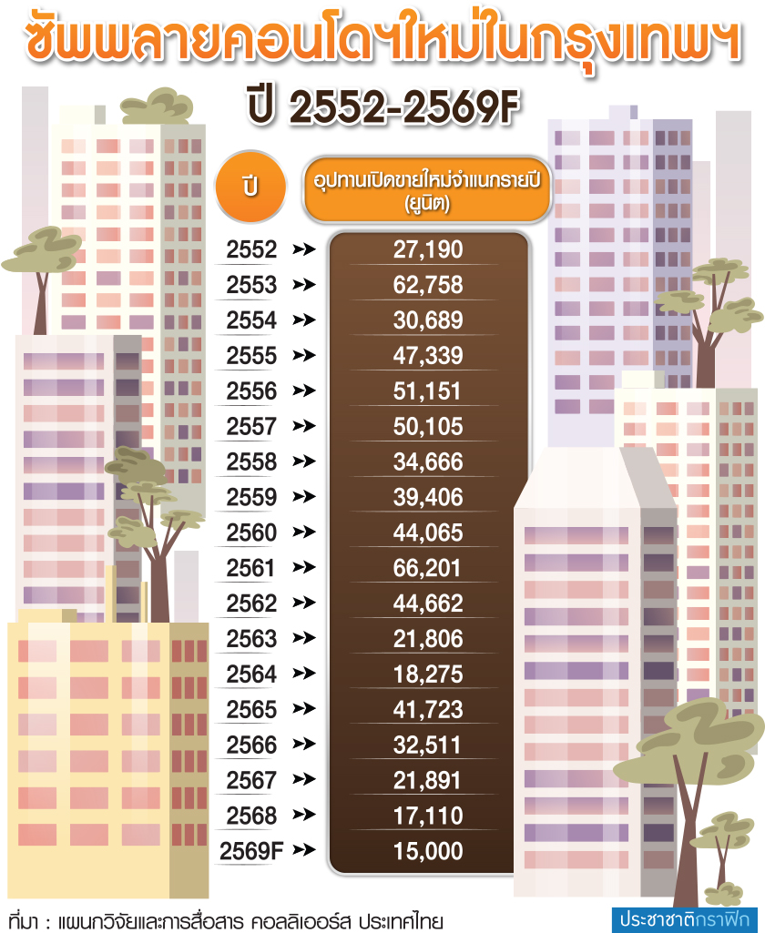 “สถานการณ์ปัจจุบันยังคงไม่ใช่ช่วงเวลาเหมาะสม ที่จะเปิดตัวคอนโดฯโครงการใหม่ เนื่องจากกำลังซื้อทั้งในส่วนของลูกค้าต่างชาติและคนไทยยังคงอยู่ในภาวะชะลอตัว ปี 2569 ตลาดห้องชุดกรุงเทพฯมีแนวโน้มเข้าสู่ช่วงของการปรับสมดุลอย่างค่อยเป็นค่อยไป ภาพรวมตลาดจึงไม่น่าจะเป็นการฟื้นตัวแบบก้าวกระโดด หากแต่เป็นการฟื้นตัวในลักษณะประคองตัว โดยมีสัญญาณบวกบางประการเริ่มปรากฏชัดขึ้นในเชิงโครงสร้าง”