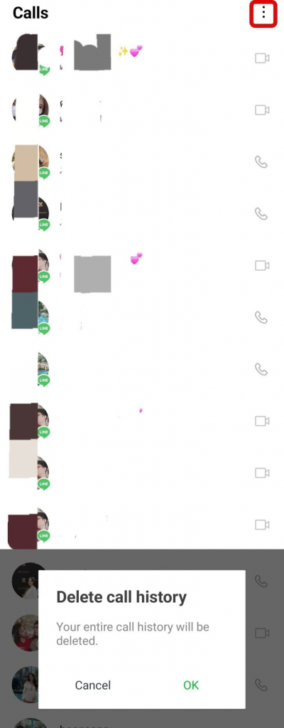 - ในหน้าประวัติการโทร ให้มองไปที่ มุมขวาบน จะเห็นไอคอน จุด 3 จุด (…) ให้กดเข้าไป