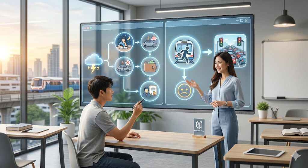 ตารางวิเคราะห์: ความแตกต่างของ Because และ Because of (The Reasoning Matrix)