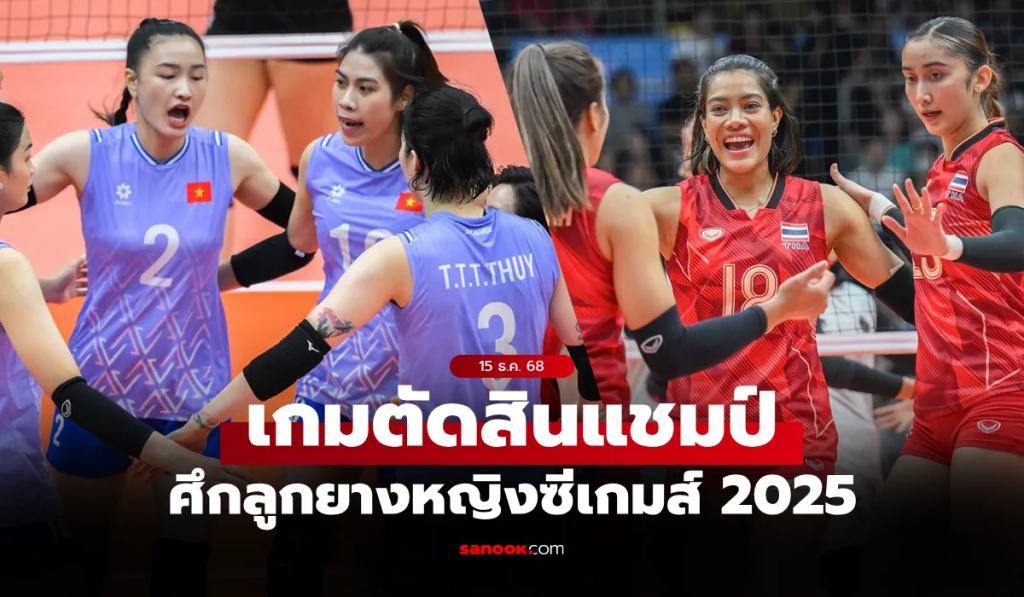 โปรแกรมถ่ายทอดสด การแข่งขันวอลเลย์บอลหญิง ซีเกมส์ ครั้งที่ 33 Sea Games 2025 ระหว่าง ทีมชาติไทย พบ เวียดนาม วันจันทร์ที่ 15 ธันวาคม 2568 เวลา 17.30 น. ที่สนาม อินดอร์ สเตเดี้ยม หัวหมาก กรุงเทพมหานคร