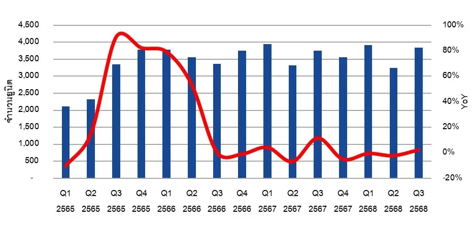 ทั้งจากการศึกษาเองและจากการทำความเข้าใจจากผู้ขายไม่ว่าจะเป้นผู้ประกอบการ พนักงานขายหรือตัวแทนนายหน้าต่างๆ ซึ่งช่วงตั้งแต่พ.ศ.2566 เป็นต้นมา การโอนกรรมสิทธิ์คอนโดมิเนียมของชาวต่างชาติในประเทศไทยอยู่ในระดับที่ค่อนข้างคงที่มีการเปลี่ยนแปลงในแต่ละไตรมาสไม่มากนัก โดยมีการโอนกรรมสิทธิ์ในช่วงระหว่าง 3,300 – 3,900 ยูนิตต่อไตรมาส มากน้อยสลับกันไป