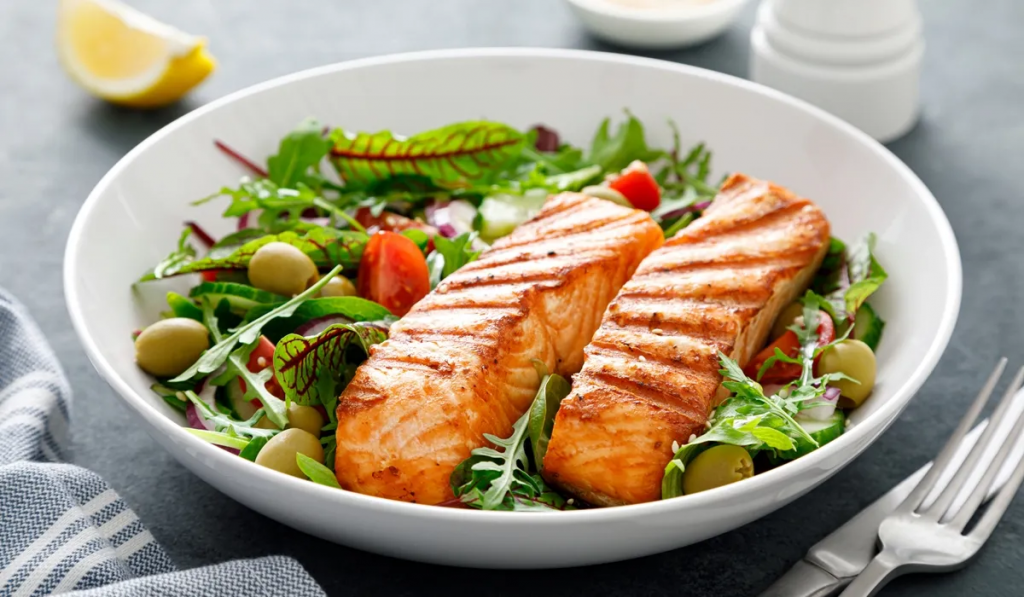 ปลา เป็นโปรตีนที่ดีต่อสุขภาพ เพราะปริมาณไขมันที่ไม่ดีต่อร่างกายน้อยกว่าในเนื้อสัตว์ประเภทอื่นๆ ปลาที่แนะนำคือปลาที่มีโอเมก้า 3 สูง ได้แก่ ปลาแมคเคอเรล ปลาทูน่า ปลาซาร์ดีน หรือปลาที่หารับประทานได้ง่ายในประเทศไทย เช่น ปลาจะละเม็ดขาว ปลากะพงขาว ปลาดุก ปลาสวาย ปลาทู ปลาสลิด ปลาตะเพียน เป็นต้น