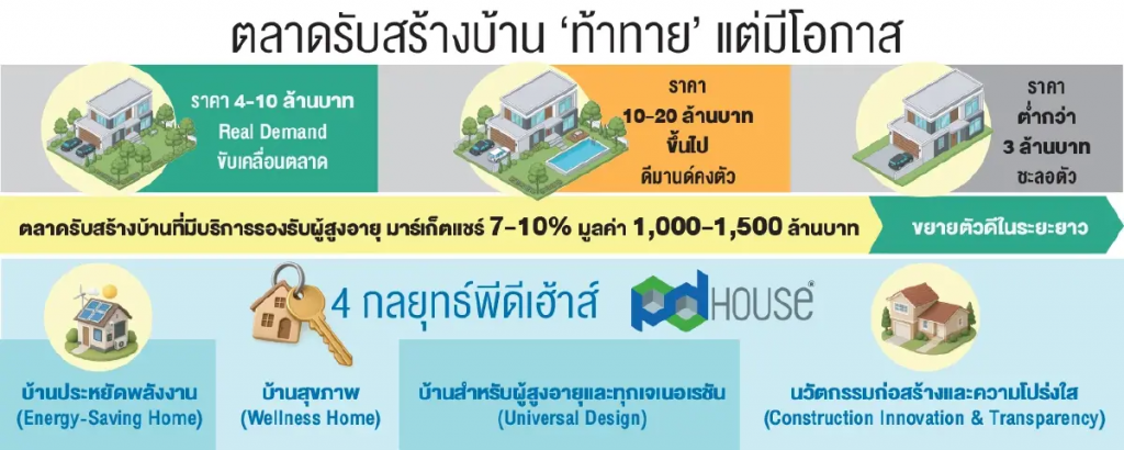 พีดีเฮ้าส์ ปรับกลยุทธ์รับเทรนด์ ‘Super-Aged Society’ลุยฟื้นเชื่อมั่นตลาดรับสร้างบ้าน หลังเผชิญความไม่แน่นอนทางการเมือง กำลังซื้อที่หดตัว รวมทั้งสังคมผู้สูงอายุ