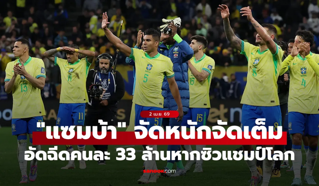 รายงานจากสื่อท้องถิ่นอย่าง Estadão ระบุว่า สหพันธ์ฟุตบอลบราซิล หรือ CBF เตรียมมอบเงินรางวัลให้ผู้เล่นคนละ 1 ล้านดอลลาร์สหรัฐ (ราว 33 ล้านบาท) หากทัพ “แซมบ้า” ผงาดคว้าแชมป์โลกสมัยที่ 6 ได้สำเร็จ