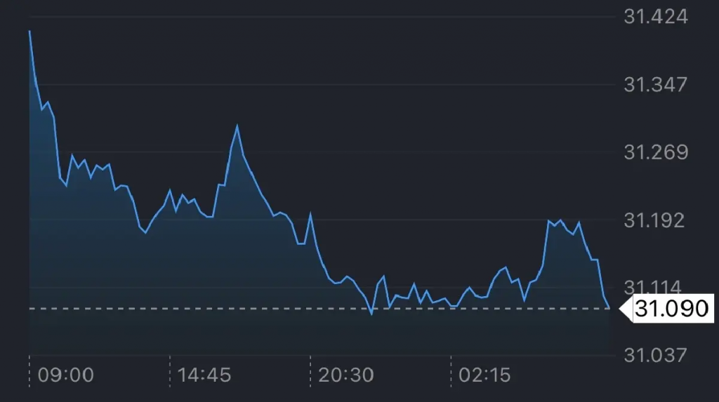 นายพูน พานิชพิบูลย์ นักกลยุทธ์ตลาดเงินตลาดทุน Krungthai GLOBAL MARKETS ธนาคารกรุงไทย เปิดเผยว่า “ค่าเงินบาทวันนี้“เปิดเช้านี้ ที่ระดับ 31.17 บาทต่อดอลลาร์ “แข็งค่าขึ้นเล็กน้อย” จากระดับปิดของวันที่ผ่านมา ณ ระดับ 31.27 บาทต่อดอลลาร์ มองกรอบเงินบาท ในช่วง 24 ชั่วโมง คาดว่าจะอยู่ที่ระดับ 31.05-31.30 บาทต่อดอลลาร์
