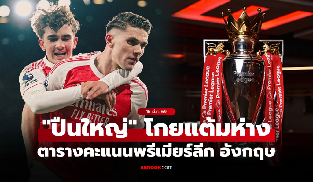 ตารางคะแนนพรีเมียร์ลีกอังกฤษ ฤดูกาล 2025-26 ประจำวันที่ 16 มี.ค. 69