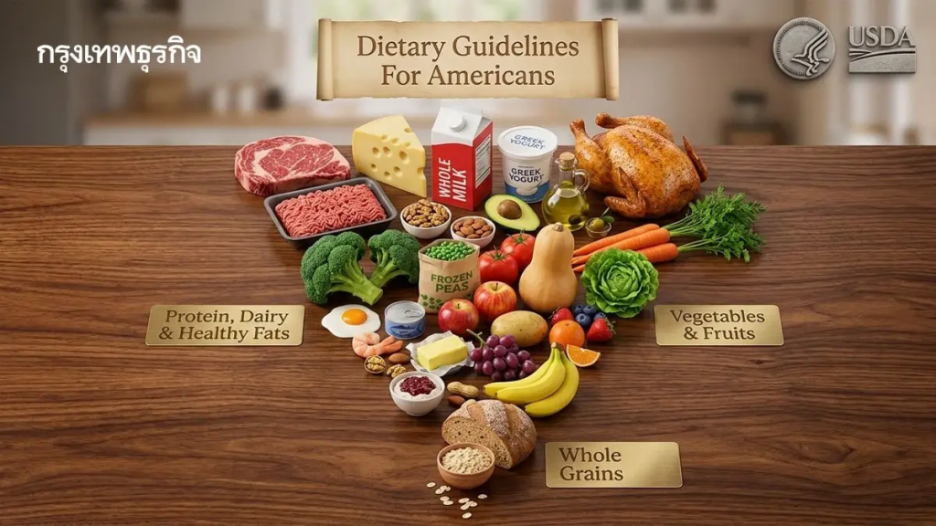 เมื่อเร็วๆนี้  สหรัฐอเมริกา ได้ออกคำแนะนำโภชนาการใหม่ สำหรับชาวอเมริกันปี 2026 ซึ่งจะกลายเป็นนโยบายแห่งชาติด้านโภชนาการ และจะถูกนำไปใช้ในทุกโรงเรียนทั่วสหรัฐอเมริกา ปี 2025 – 2030 ออกมาในทรง “พีระมิดกลับหัว” ซึ่งแตกต่างจากของเดิมอย่างสิ้นเชิง